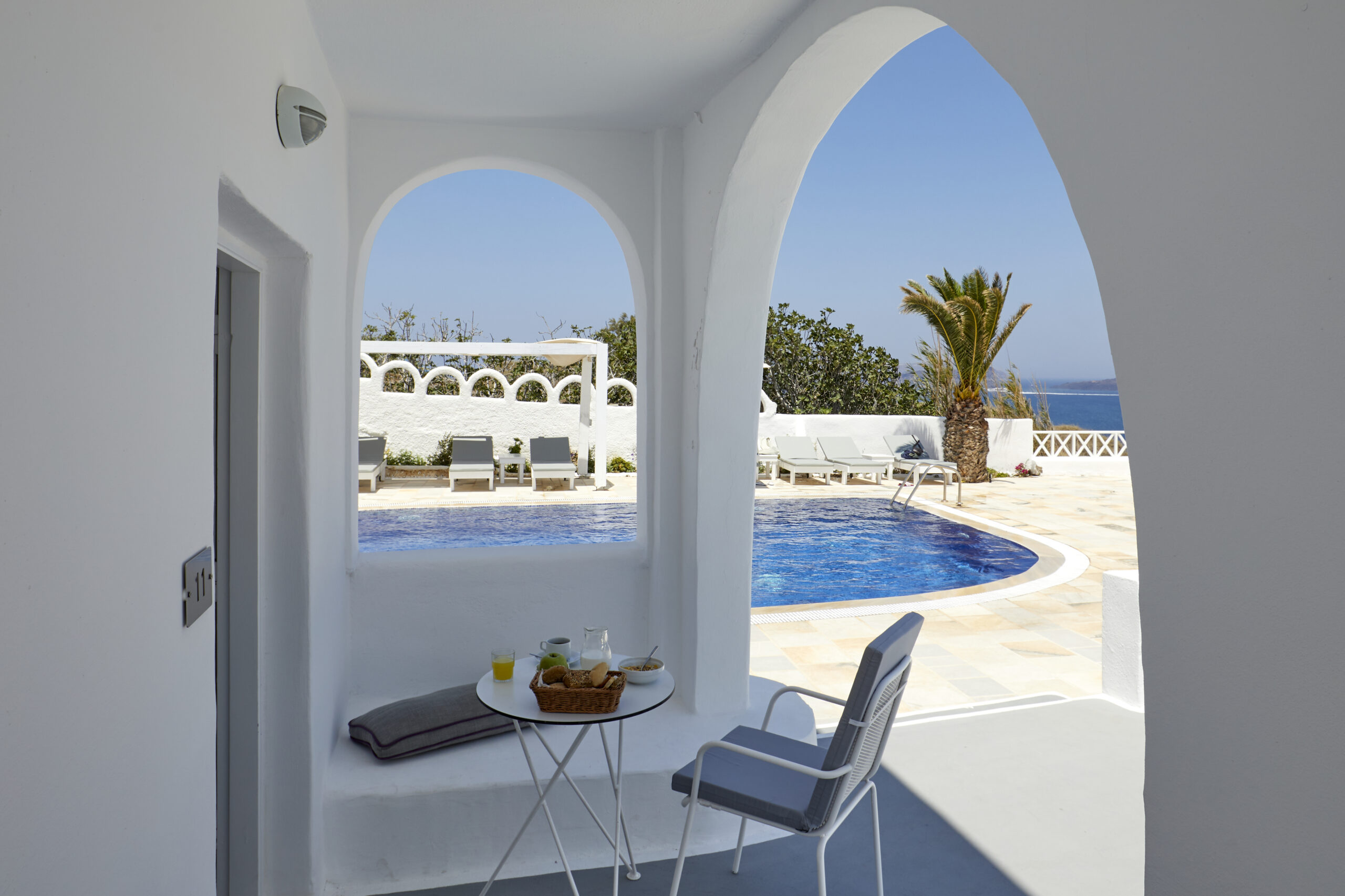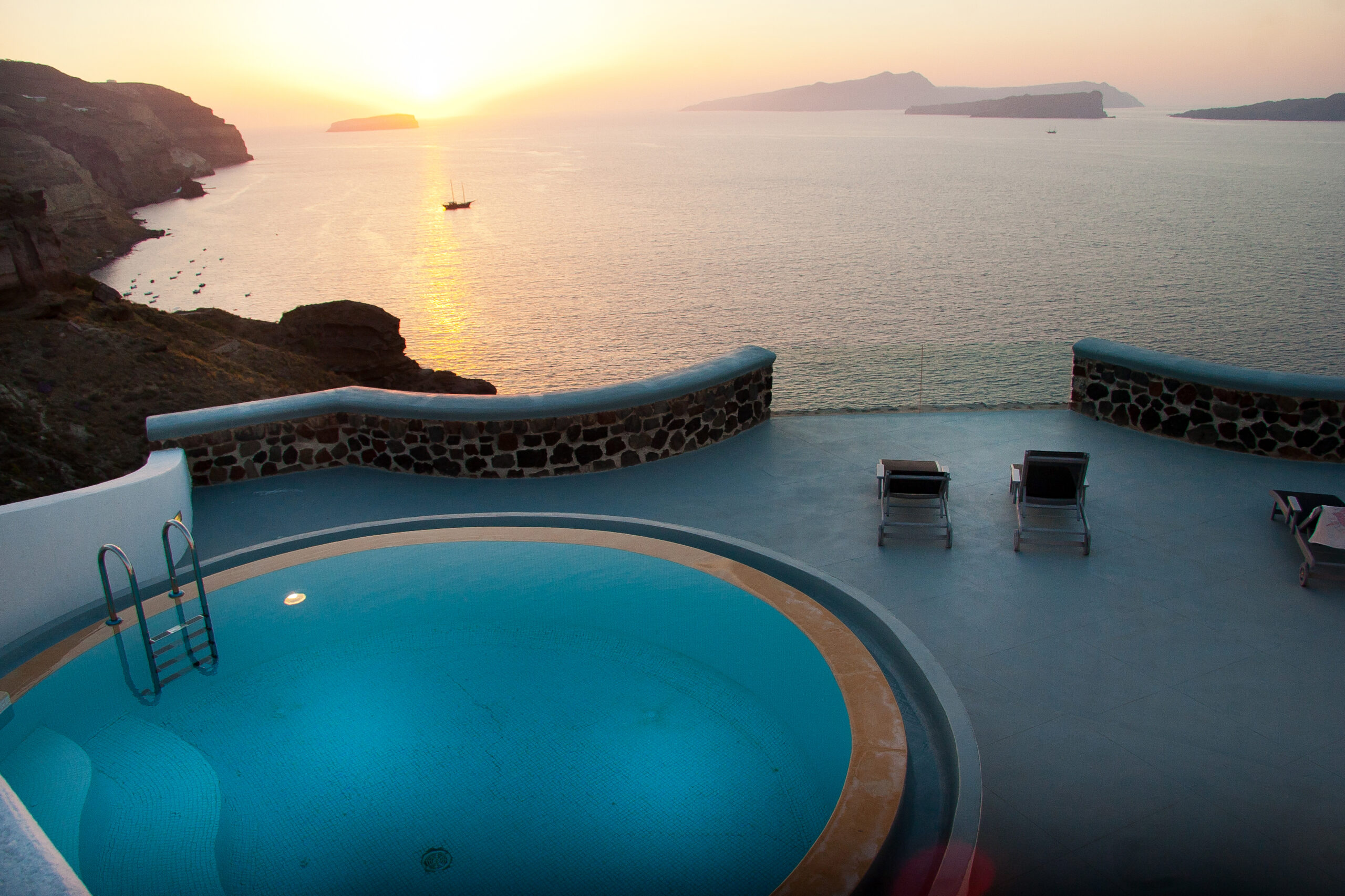 You are spoiling your muse! Your writing residences have been specifically chosen to maximize inspiration and luxurious comfort. Both are outstanding resorts. Located a five minute walk from each other, they are perched atop of the largest inhabited caldera in the world. Enjoy the magnificent view of the Aegean Sea and the slumbering volcanoes peaking through the blue waters, rimmed by incredible cliffs and picturesque white houses.